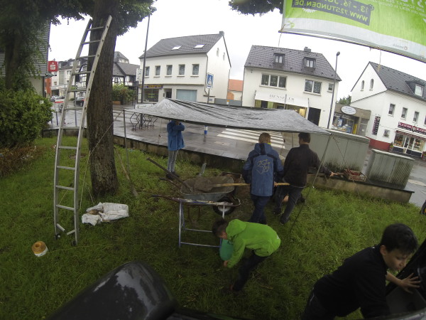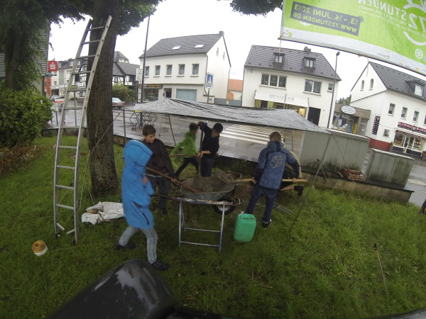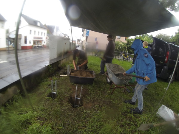 Die Juffis haben heute begonnen wir haben das Fundament gesetzt für den Schaukasten. Die Pfadis haben die Farb gestaltung der Wand abgestimmt damit es am Samstag reibungslos läuft.